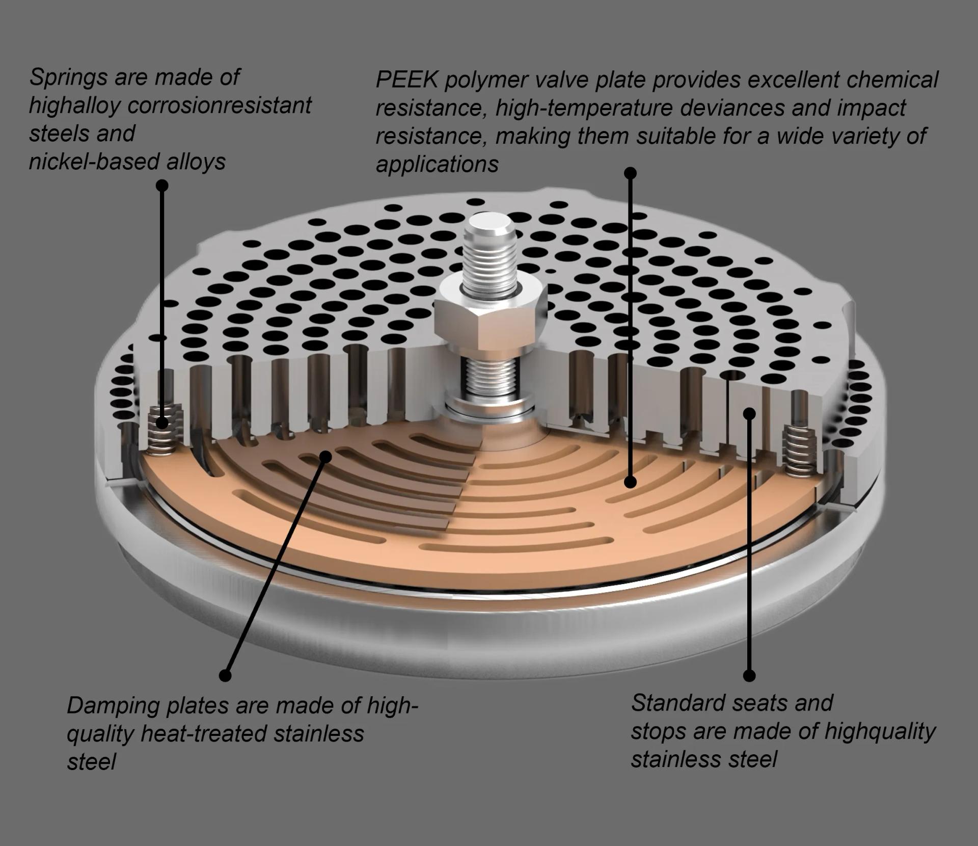 - The polymer valve plate, locked against rotation, provides excellent tightness