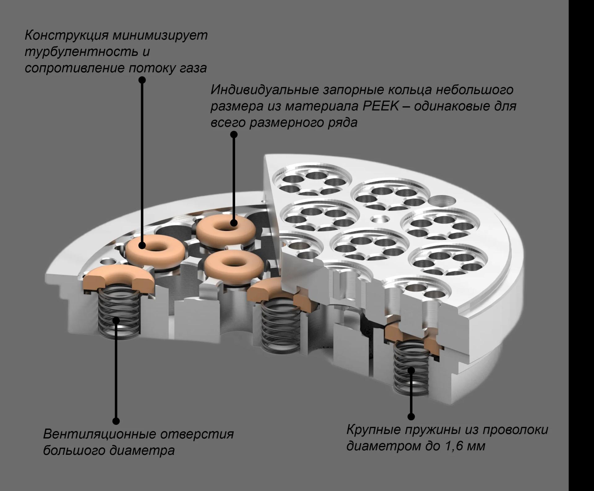 • Оптимальная производительность и максимальный ресурс достигаются благодаря большой высоте подъёма, обеспеченной небольшим размером и весом колец, а также их полусферическим поперечным сечением